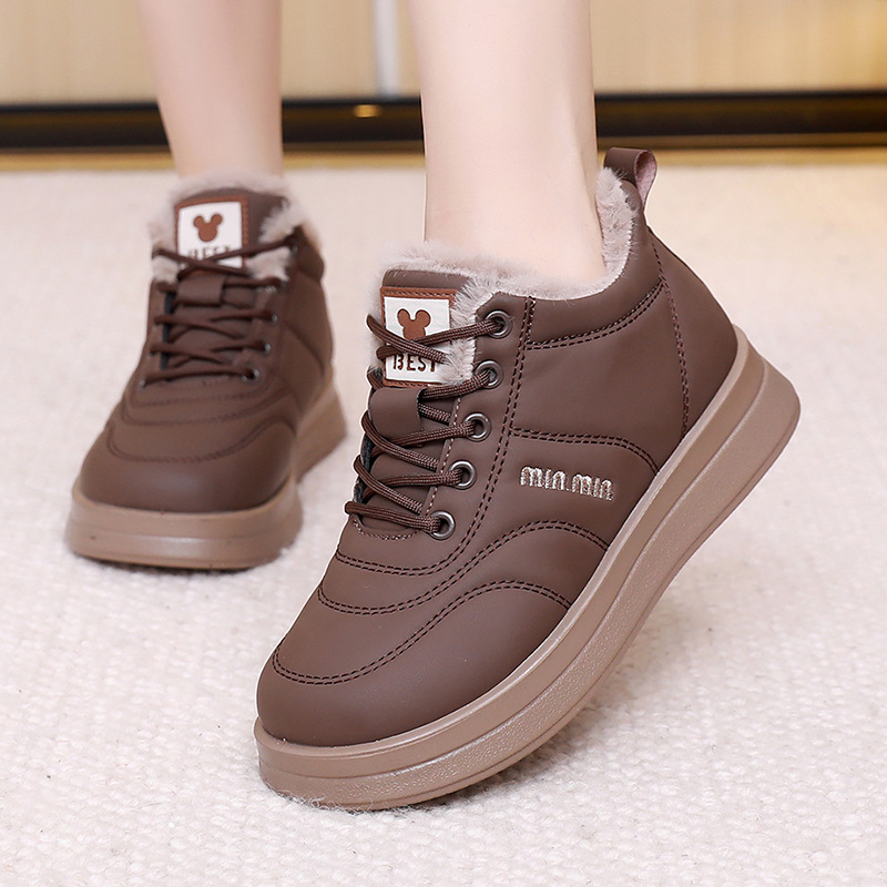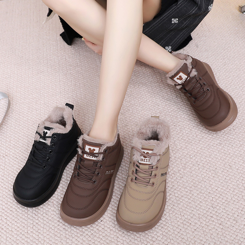 Cotton Shoes For women, Warm, Anti-Slip, Thickened Lace-up Casual Snow Boots, Outdoor Windproof Boots